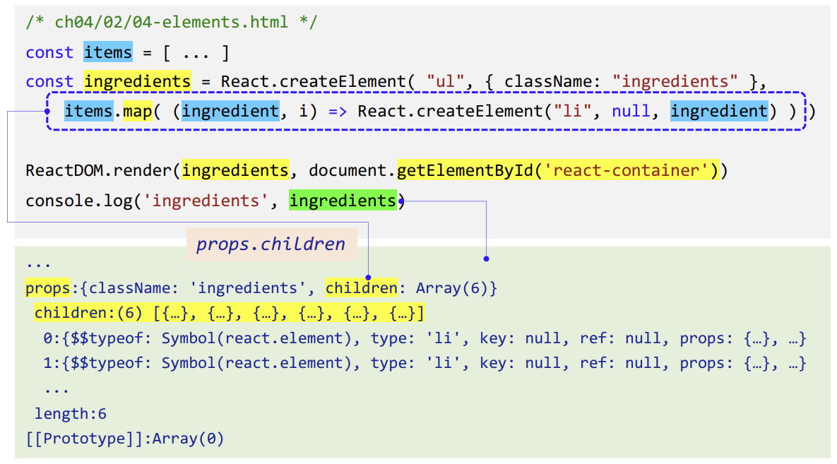 const ingredients = React.createElement(