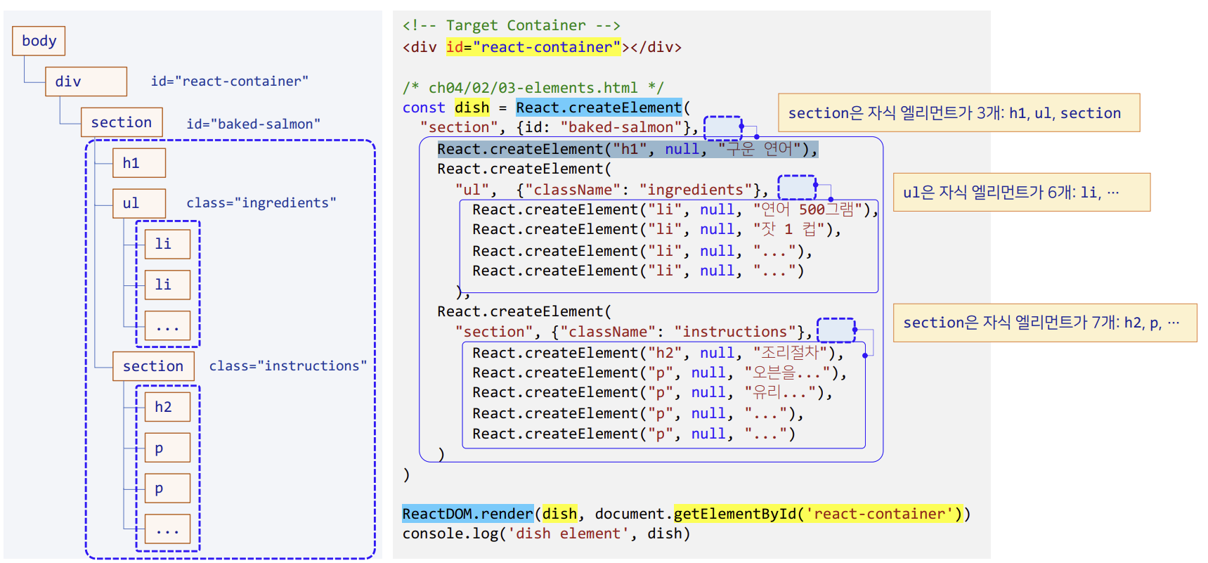 React.createElement("h1", null, "구운 연어"),