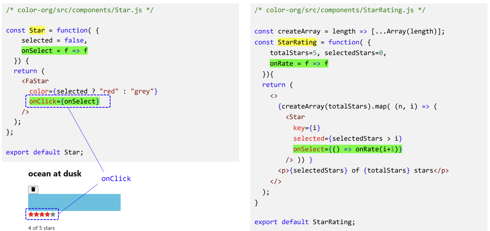 ▶ 상위 컴포넌트(StarRating)에서 하위 컴포넌트(Star)로 전달하는 방식