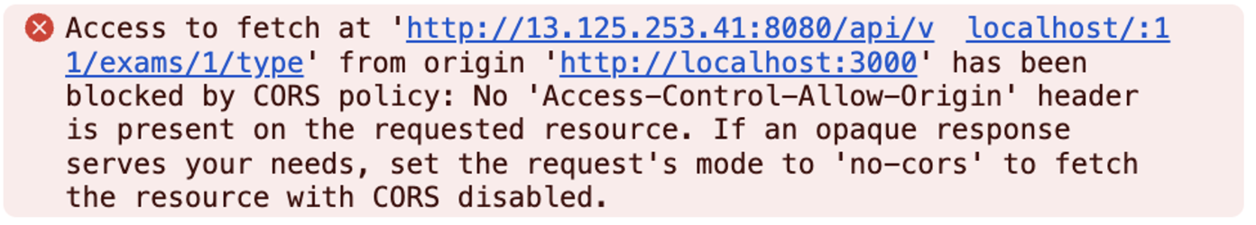 개발도중, API에 접근하려하자 CORS 정책에 의해 막혔다는 에러가 발생했다.